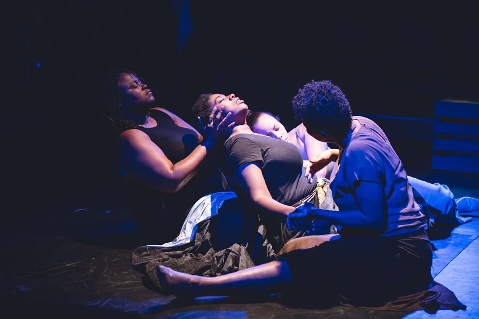 Morgana Wilborn (The Egg) offers up several raw performances, notably her initial character’s agonized confrontation of the loss of her breast and a searing monologue as a woman who beat cancer, but whose husband then left her via note. Chris Sanders (The Caterpillar) partners with Wilborn as the nurse fitting her character’s prosthetic who has scars of her own. She scintillates in a monologue regarding post-cancer sexuality, swinging between sensual memories of her past experiences with her husband, and her hope of reclaiming that part of herself as she heals. Monique Ridge-Williams (The Chrysalis) dominates the stage in a sort of self-dialogue (half-spoken, half-dance) with Guinea Bennett-Price (Soul Rep’s Co-Artistic Director) as a sort of warrior alter-ego of a woman spiraling into what ifs after her diagnosis, and later gives an aching turn as “Joy,” who turns to alcohol and shuts out the world after being diagnosed. Bennett-Price has some of the funniest moments. Despite the seriousness of the segment, her turn as Joy’s persistent friend is both natural and hilarious, and her final performance in the solo vignette in “Damn Kale!” is funny enough that it would be criminal to spoil its punchline. An ensemble scene titled simply “Chrysalis,” with recorded dialogue from Sanders, is almost uncomfortably intimate, but beautiful, and the final visual of the four women entwined in a sort of four-person Pieta was arresting.
